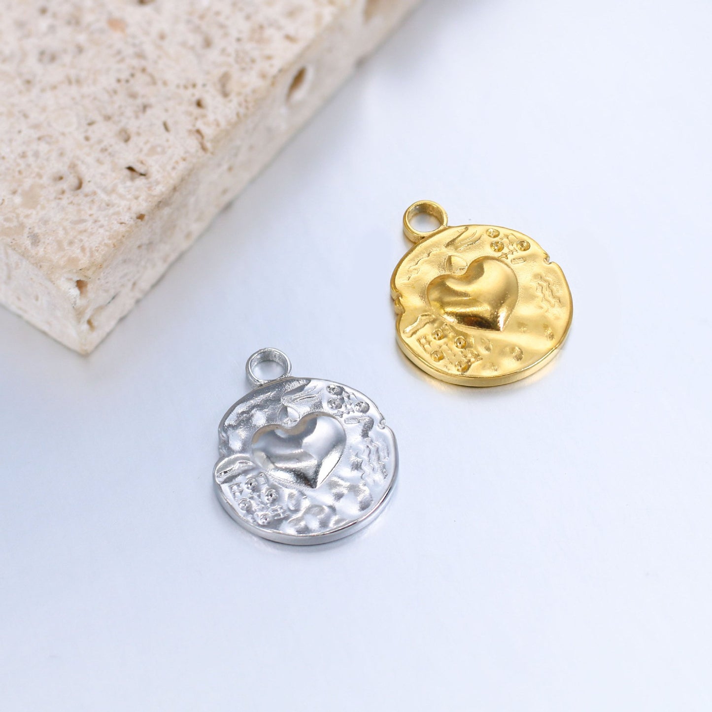 3D Heart Irregular Round Stainless Steel Pendant