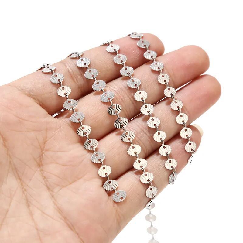 6mm Stainless Steel Texture Disc Chain - By the Meter