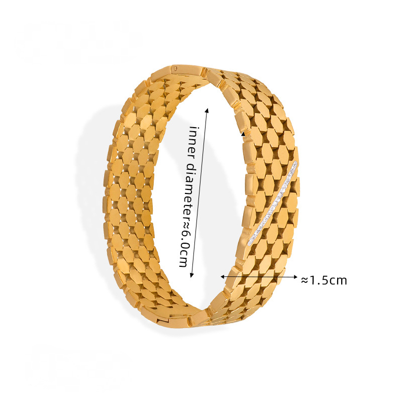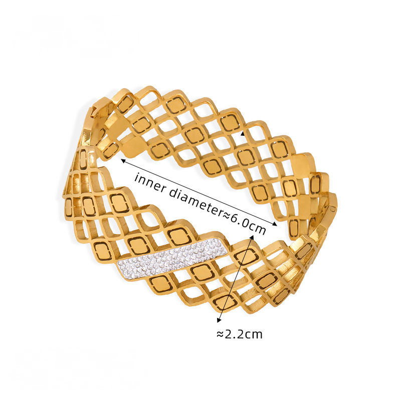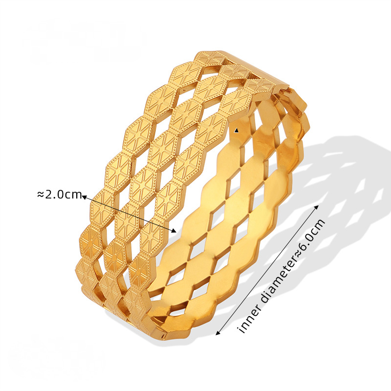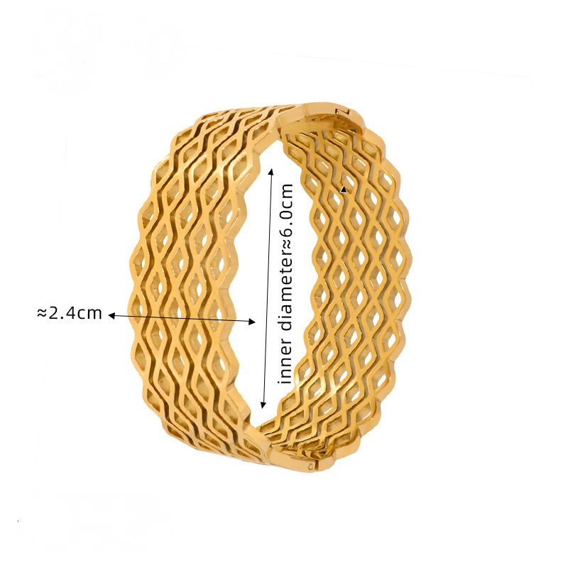 Hollow Texture Stainless Steel 18K Gold PVD Bangle Bracelet