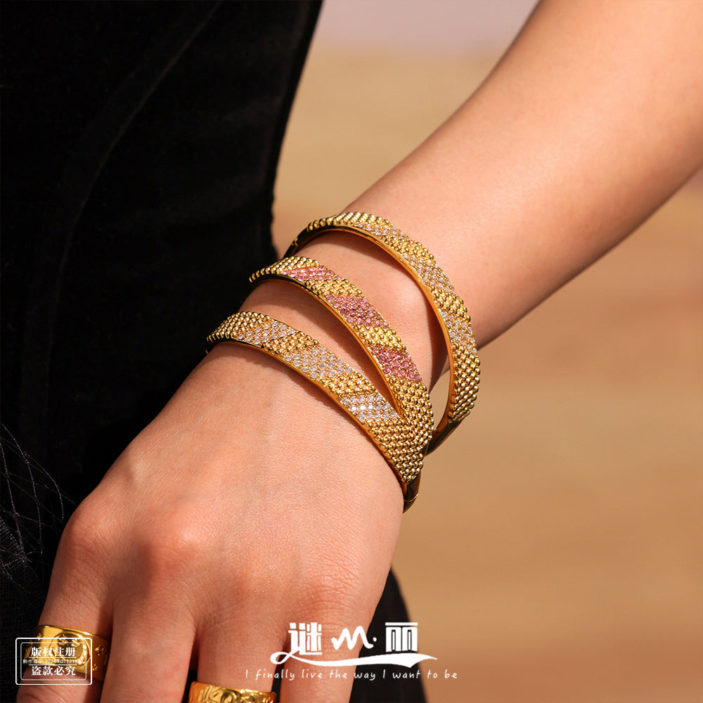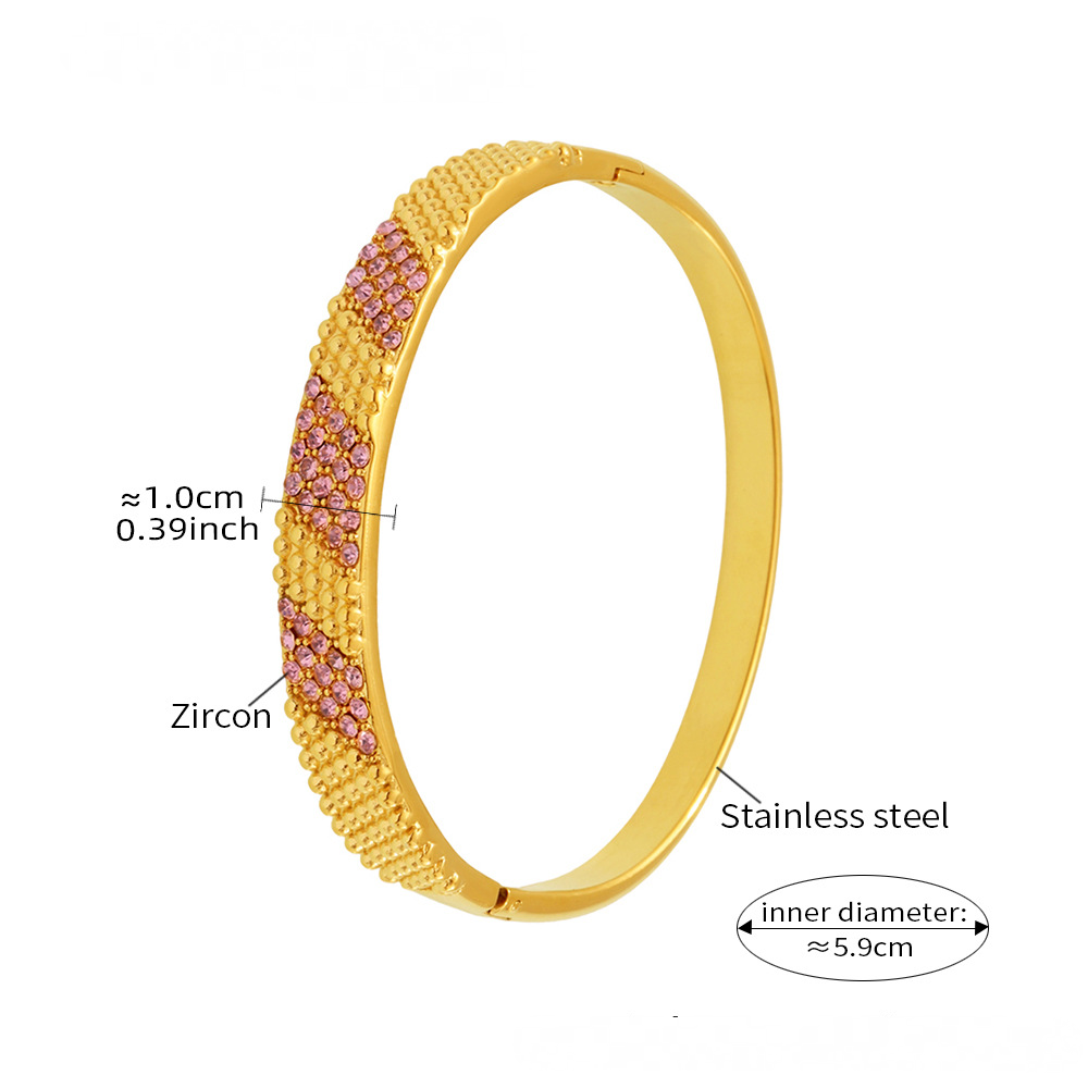 Stainless Steel 18K Gold PVD Cubic Zirconia Buckle Bracelet