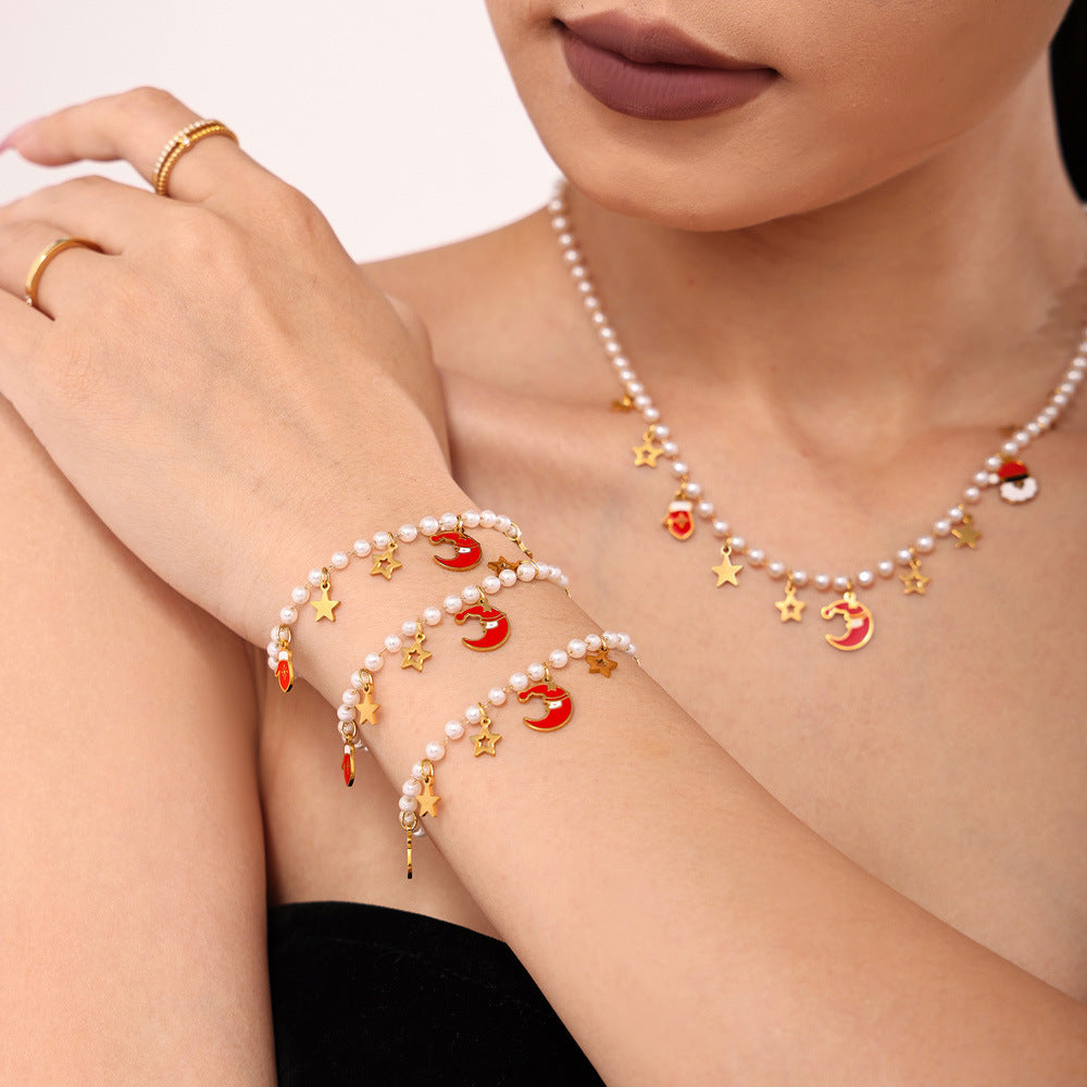 Stainless Steel Christmas Cartoon Imitation Pearl Bracelet