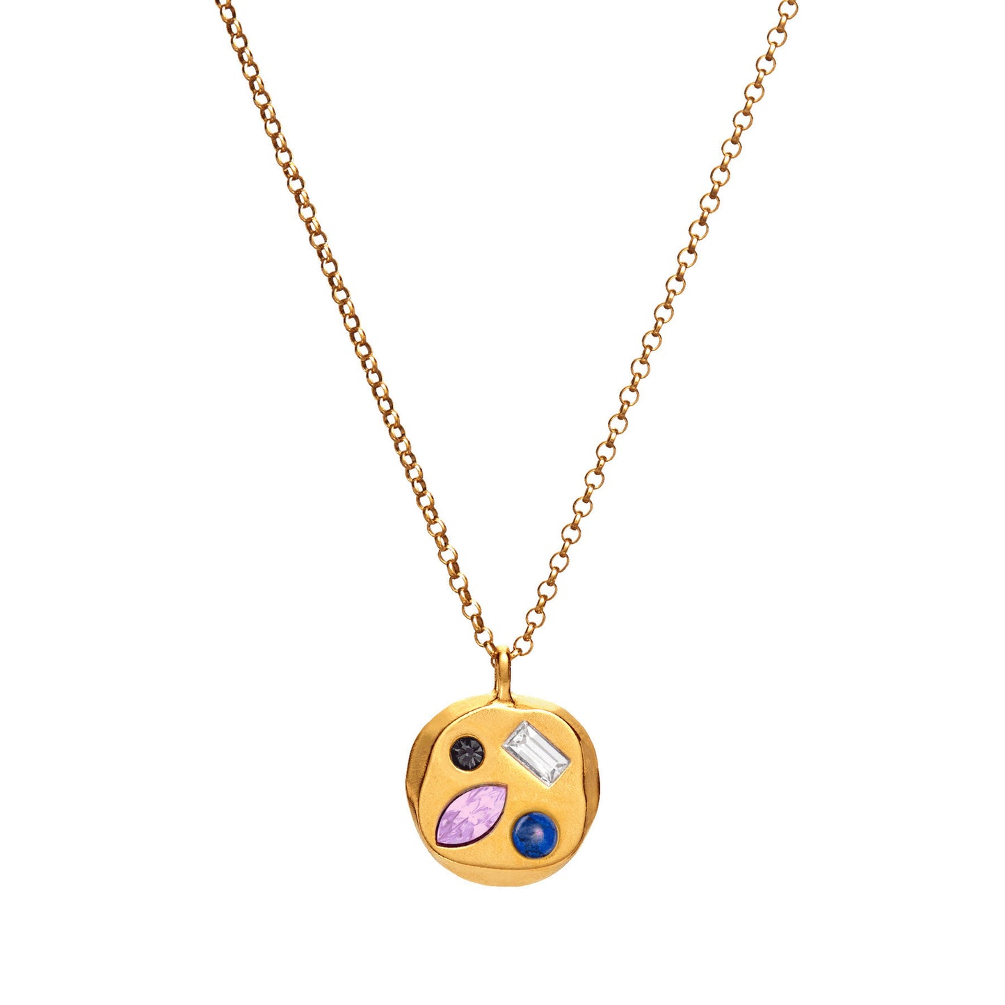 Stainless Steel Irregular Round Inlay Birthstone Pendant Necklace