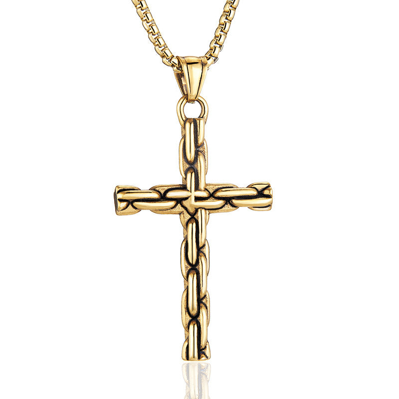 Stainless Steel Punk Men's Cross Pendant Necklace
