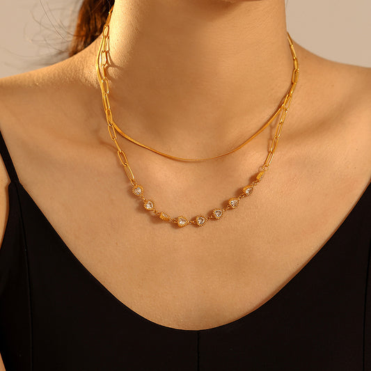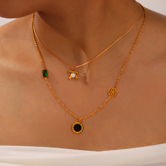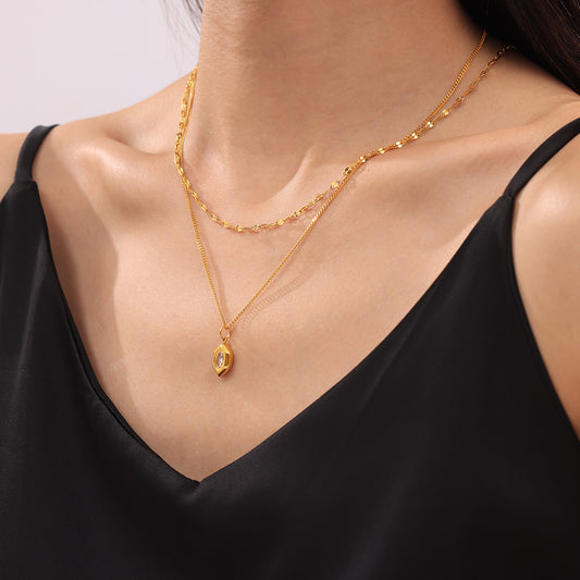 Stainless Steel Double-layer Glass Geometric Necklace