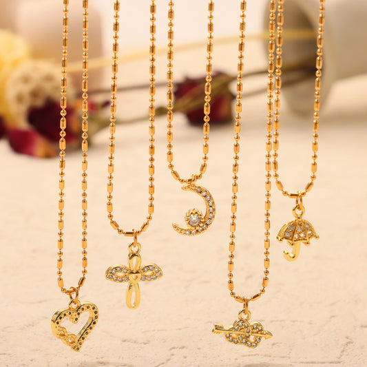 Stainless Steel Cartoon Shape Pendant Beaded Chain Necklace