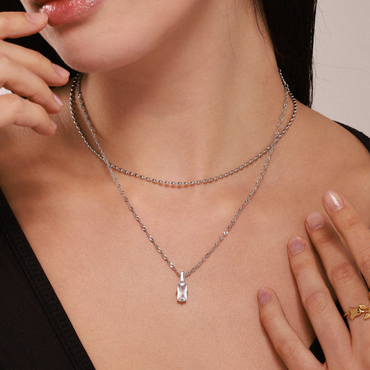 Stainless Steel Rectangular Cubic Zirconia Double Layer Necklace