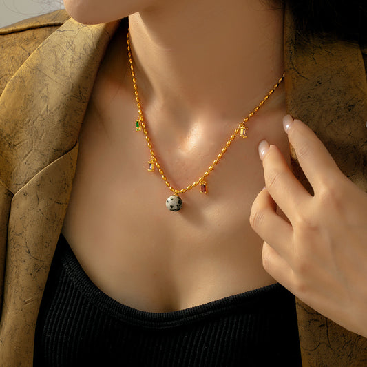 Stainless Steel Natural Stone Cubic Zirconia Charm Necklace