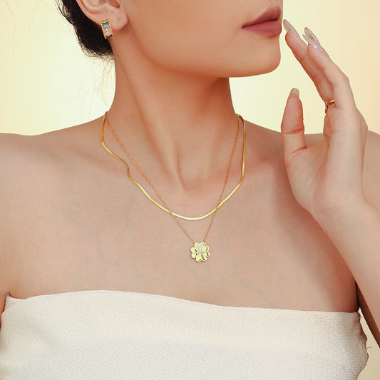 Stainless Steel Four-leaf Clover Mama Letter Pendant Stackable Necklace