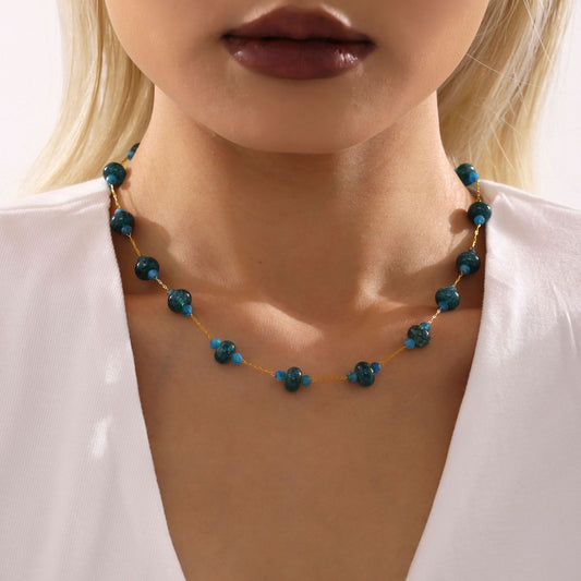 Precio habitual $5.95 USDPrecio habitualPrecio unitario / porPrecio de oferta $5.95 USDStainless Steel Natural Stone Beaded Necklace