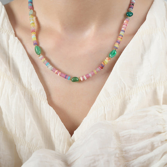 Ethnic Rainbow Natural Stone Freshwater Pearl Beaded Necklace