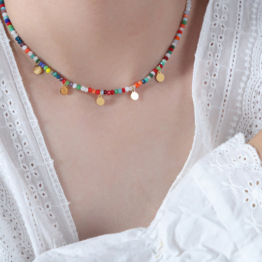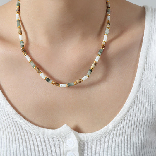 Stainless Steel Ball Natural Stone Beaded Necklace