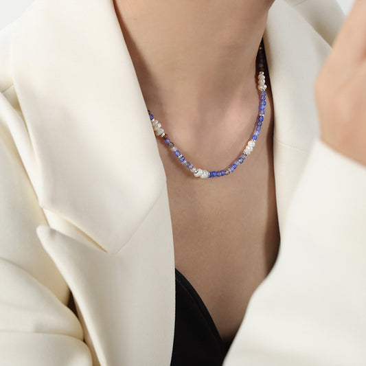 Natural Stone Beaded Crystal Pendant Double Layer Necklace