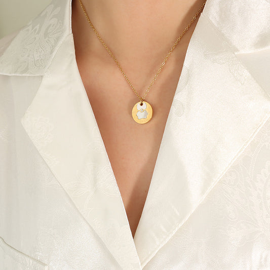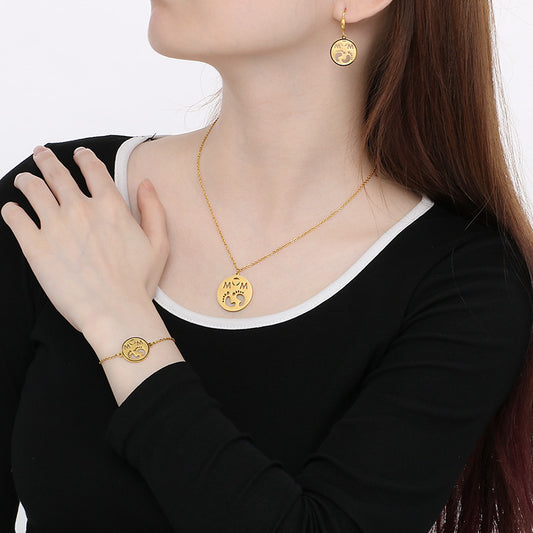 Tainless Steel Round Pendant Mom Letter Footprint Pattern Necklace