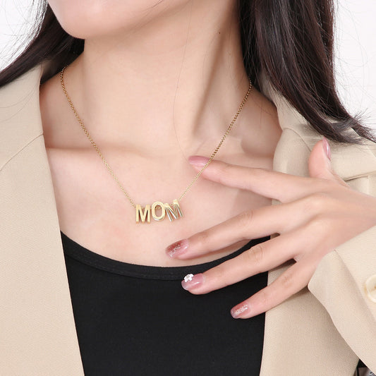 Stainless Steel Mama 4 Single Letter Pendant Necklace