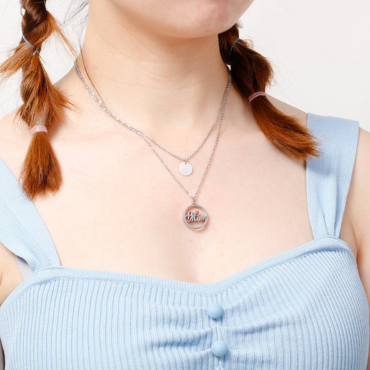 Stainless Steel Heart Pendant & Round Pendant Double Layer Necklace