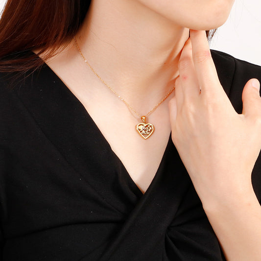 Stainless Steel Mama Pendant Inlay Cubic Zirconia Necklace