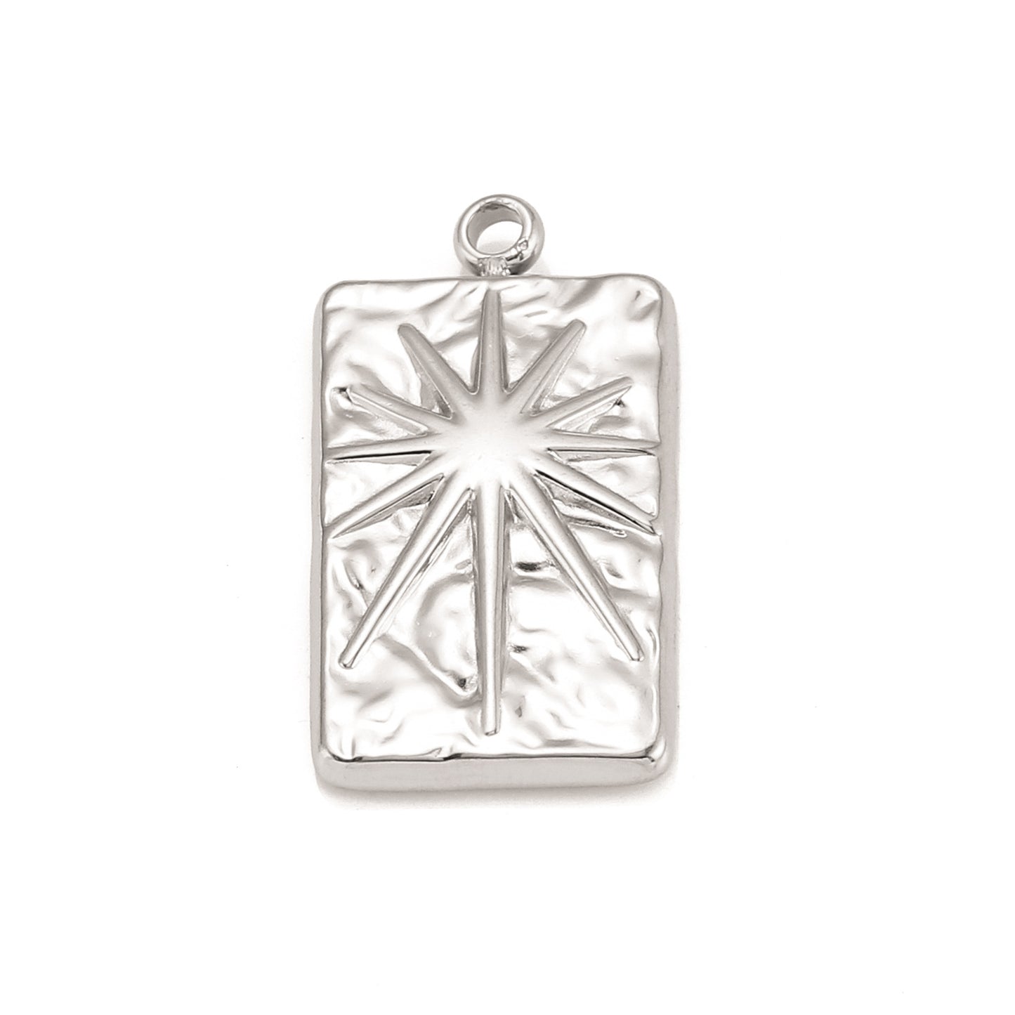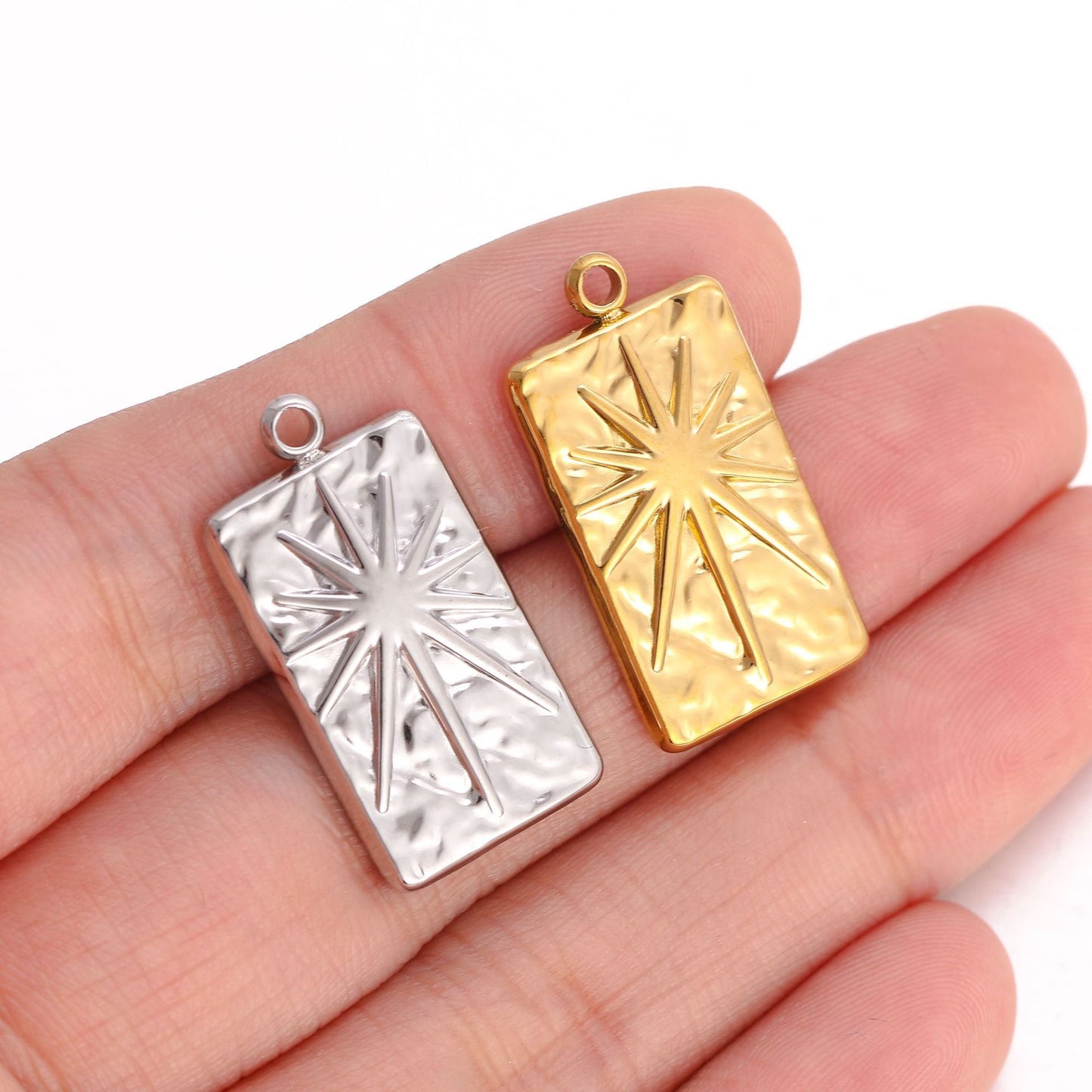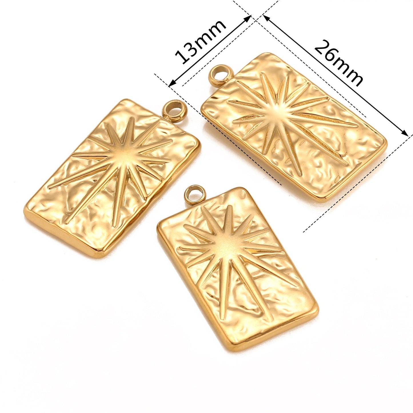 18K Gold PVD 3D Sun Rectangular Stainless Steel Pendant