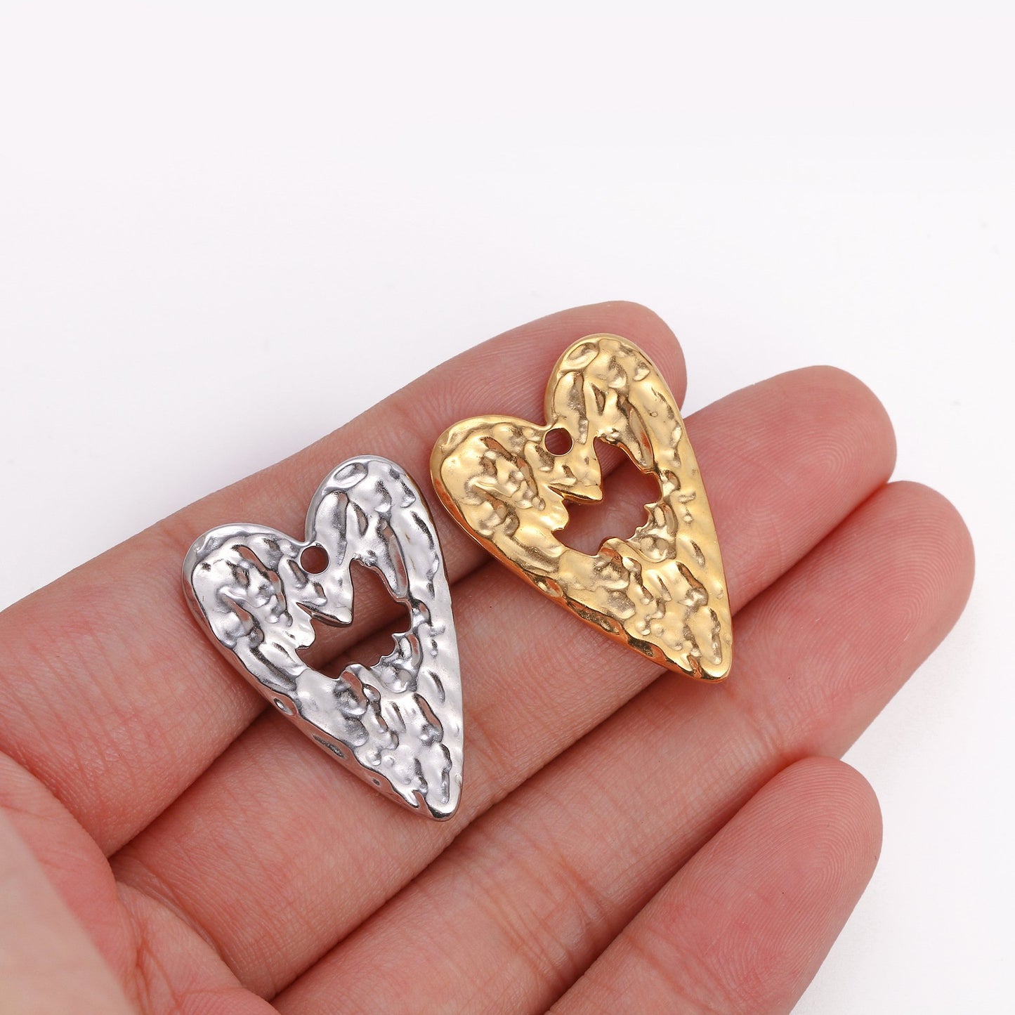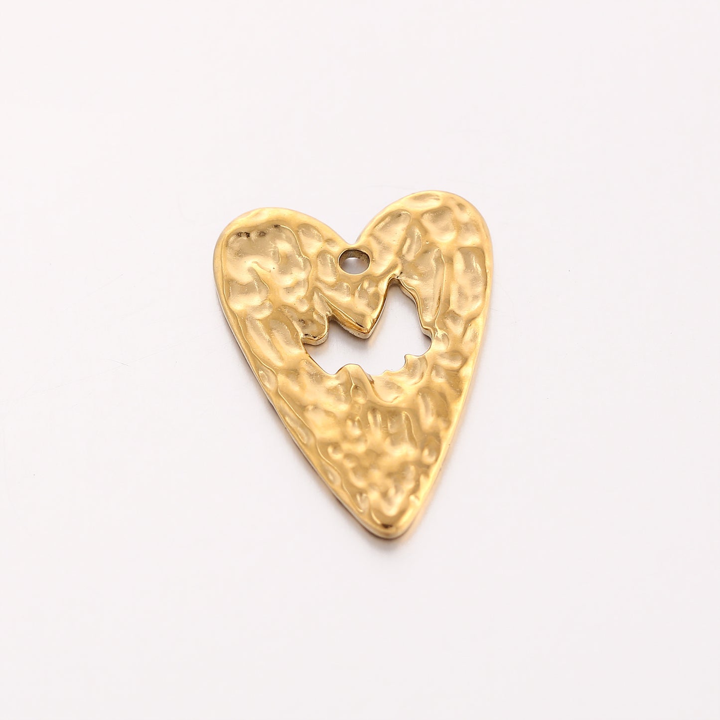 18K Gold PVD Hollow Irregular Heart Hammer Pattern Pendant