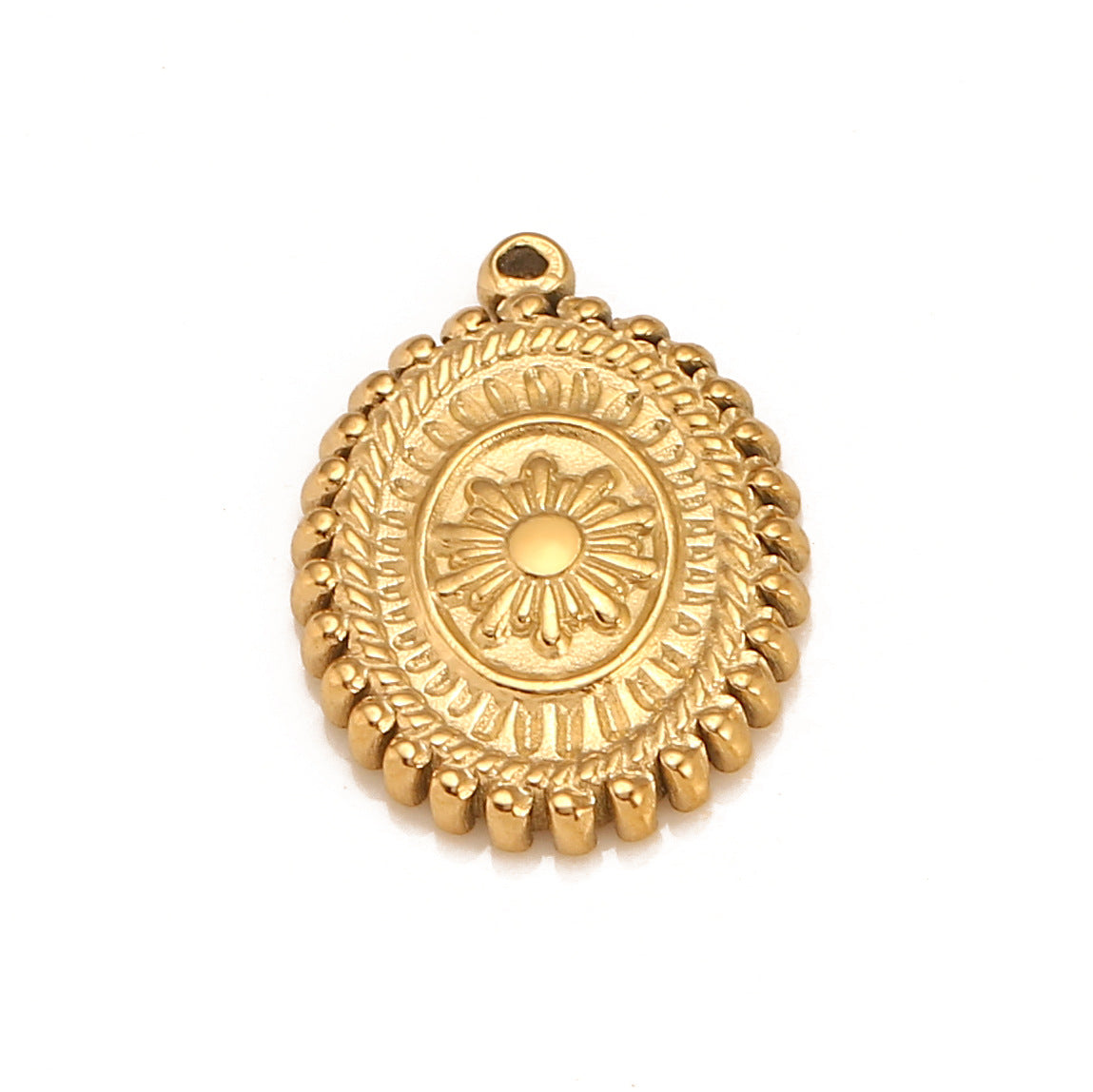 18K Gold PVD Stainless Steel Retro Pattern Oval Pendant