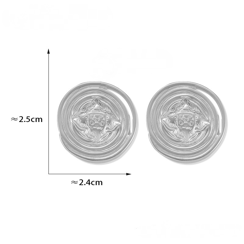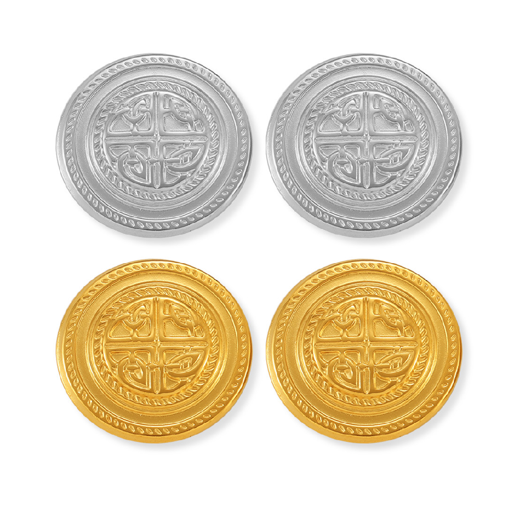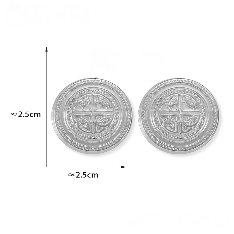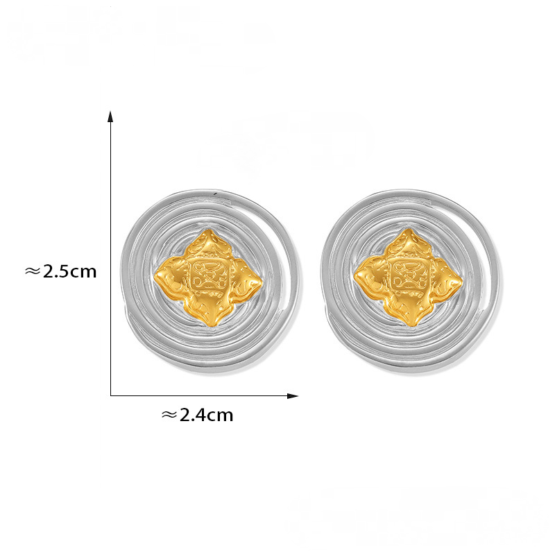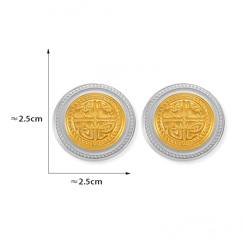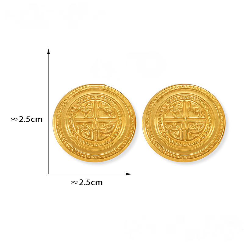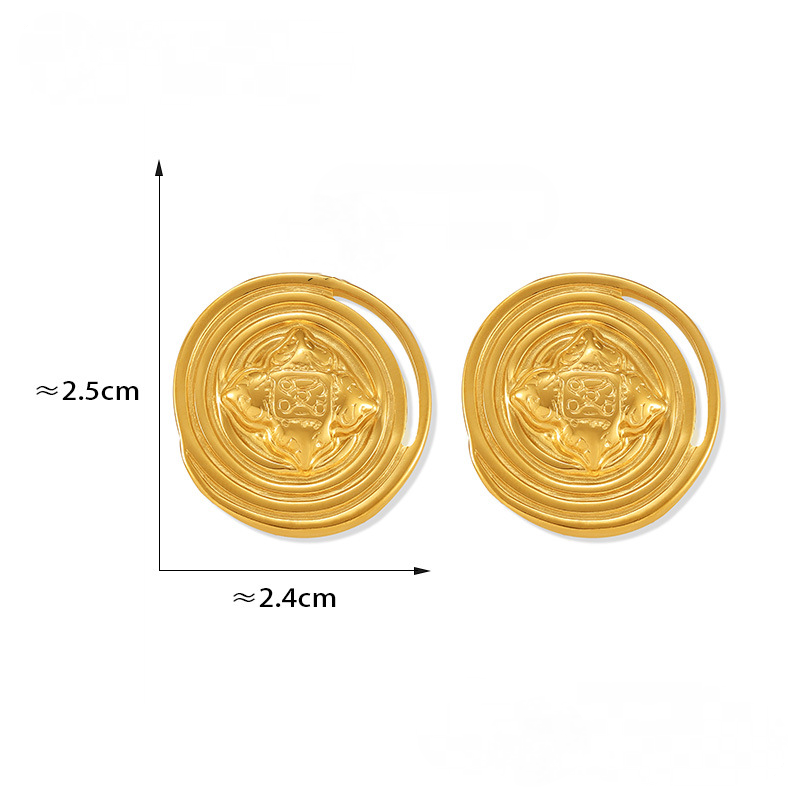 18K Gold PVD Design Textured Round Stainless Steel Stud Earrings