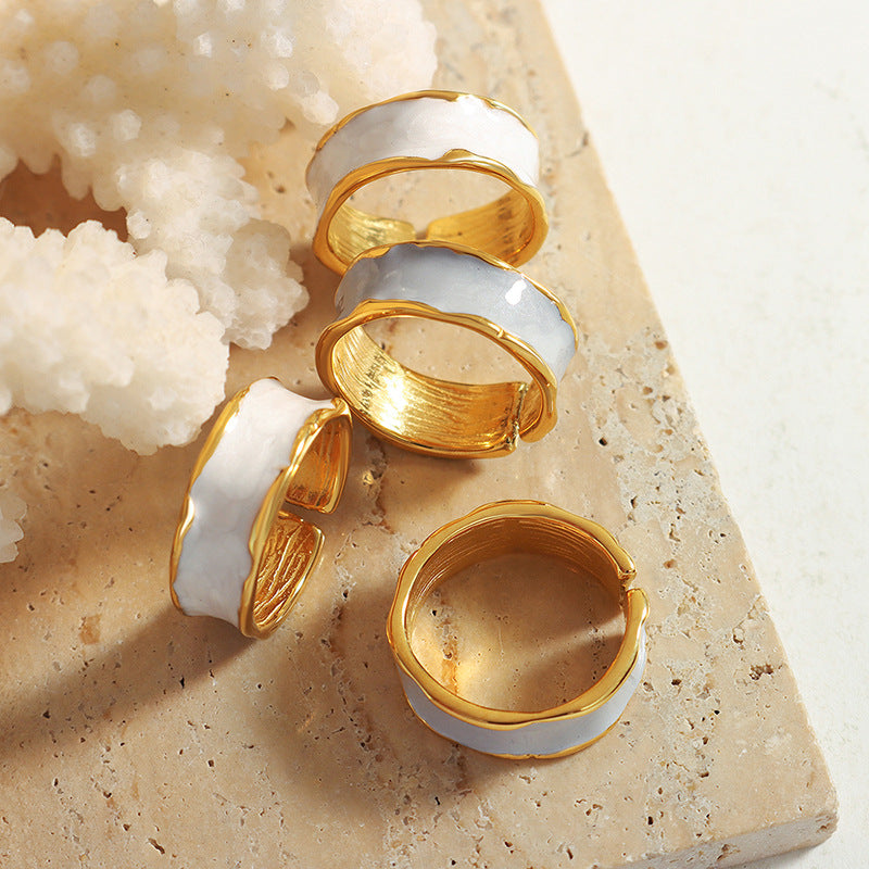 Blue and White Oil Drip Stainless Steel Cuff Ring