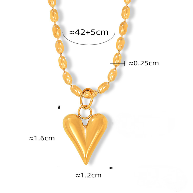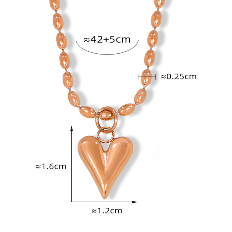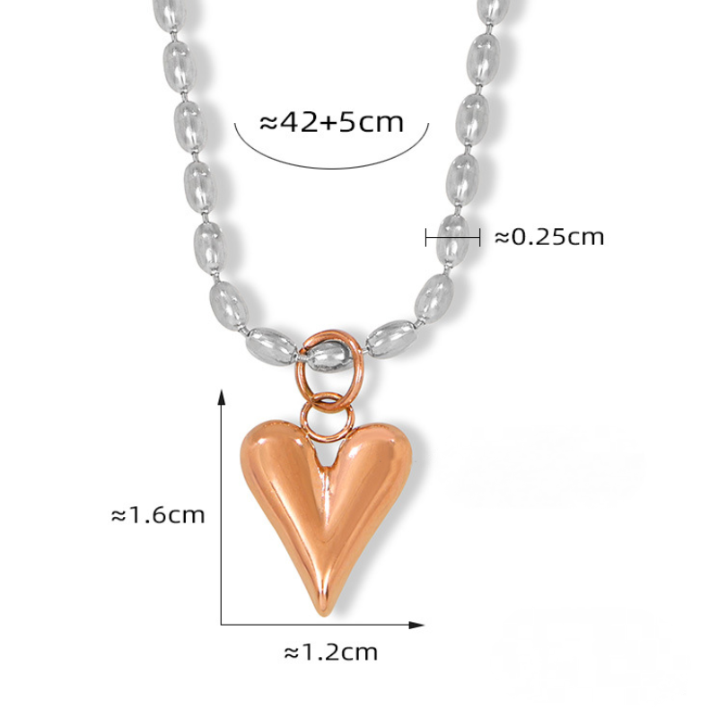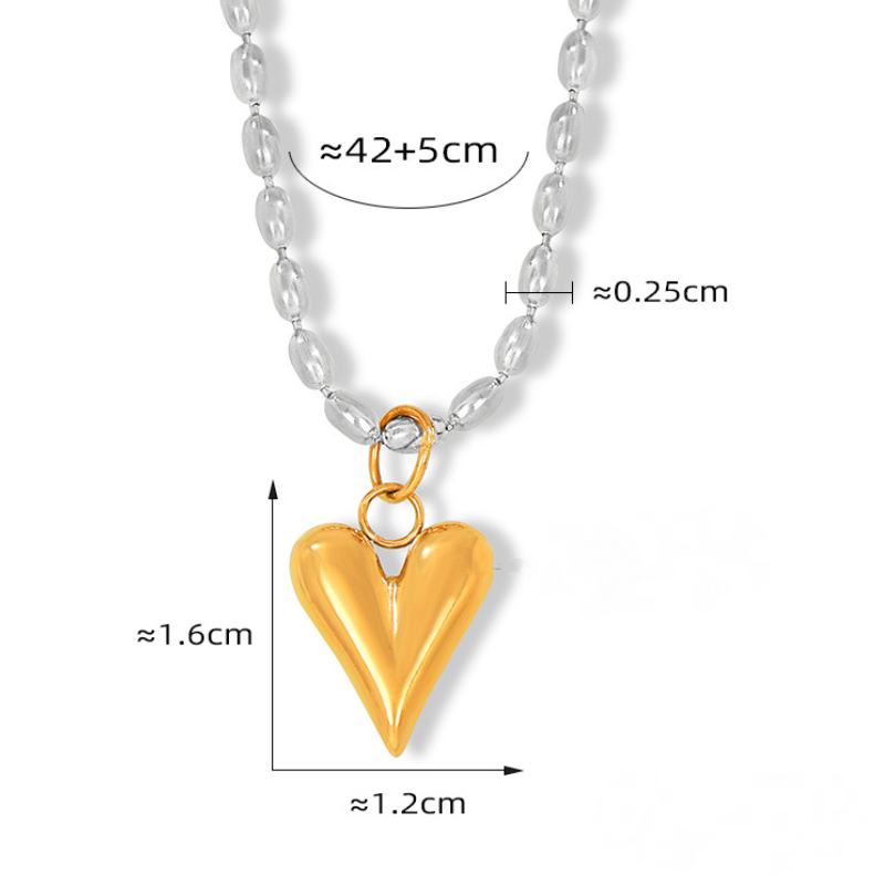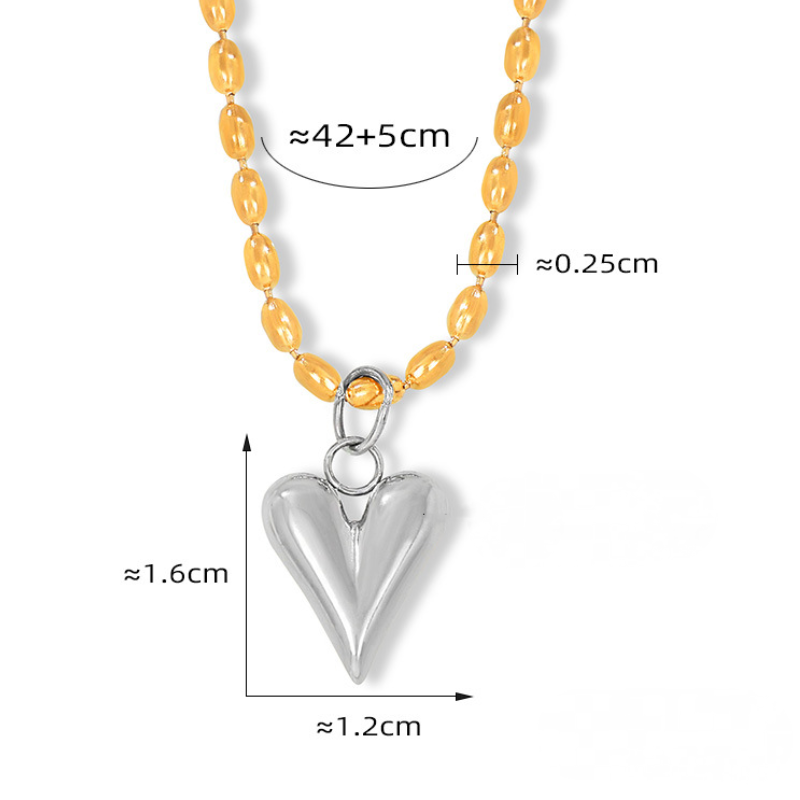 Heart Pendant Beaded Chain Stainless Steel Necklace