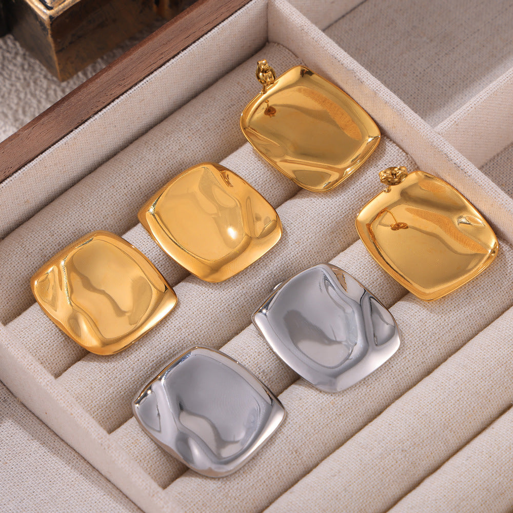 Irregular Texture Square Stainless Steel Stud Earrings