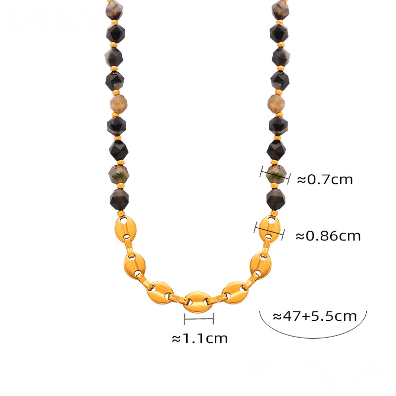 Natural Stone Beaded Spliced Chain Necklace Bracelet Jewelry Suit