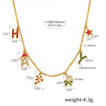 Stainless Steel Christmas Zircon HAPPY Letter Necklace Bracelet Earrings Jewelry Suit