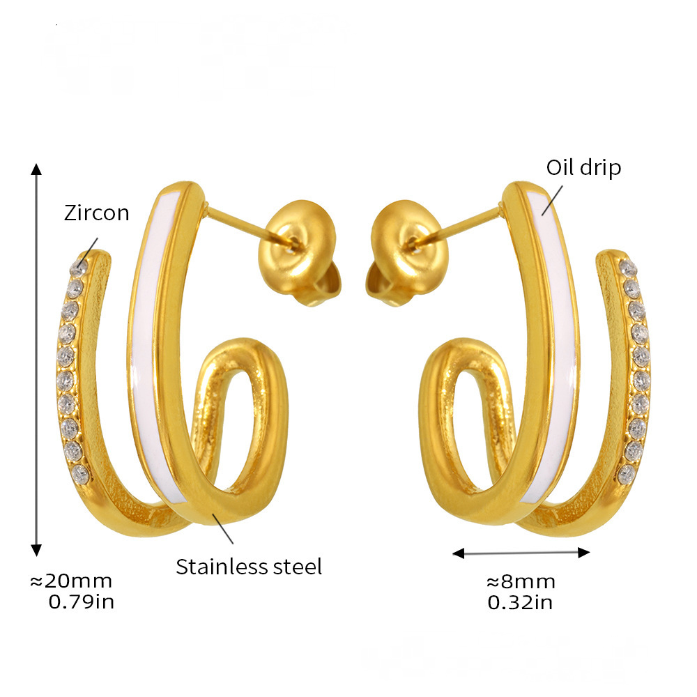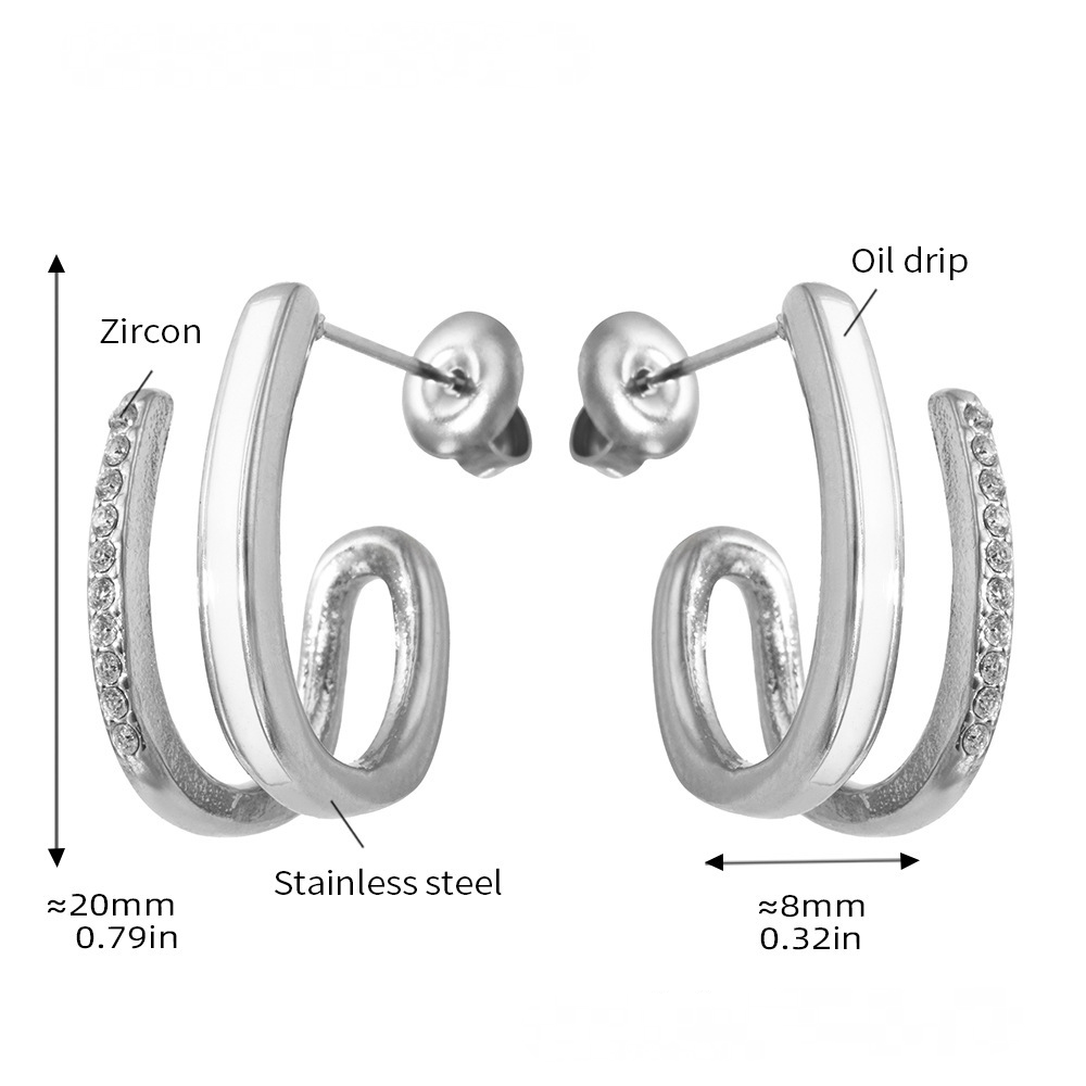 Stainless Steel Cubic Zirconia Enamel Glaze Stud Earrings