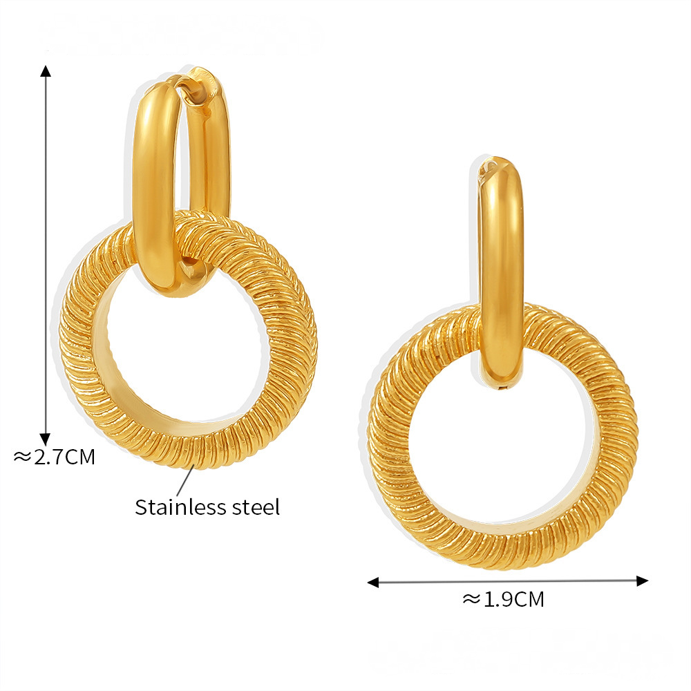 Stainless Steel Double Ring Thread Drop Earrings