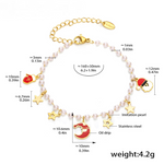 Stainless Steel Enamel Christmas Element Pendant Imitation Pearl Necklace Bracelet Jewelry Suit