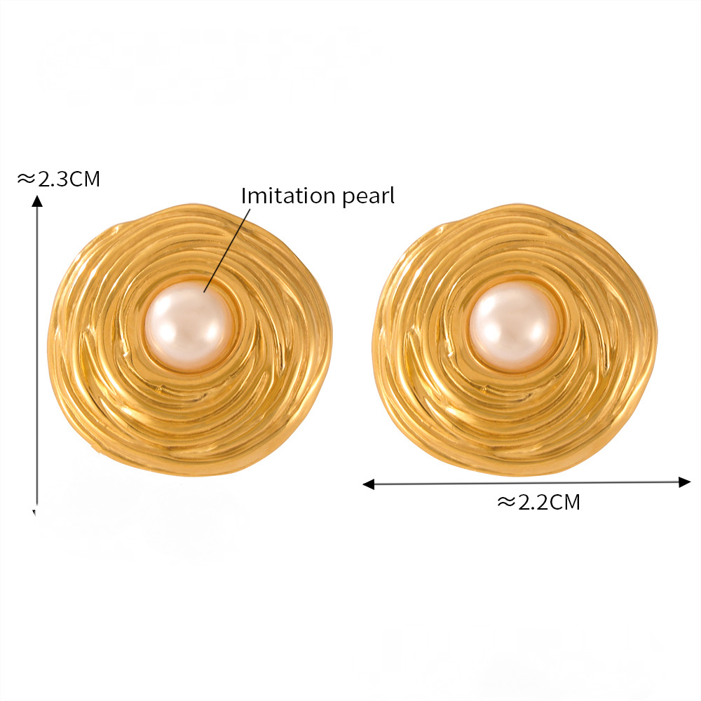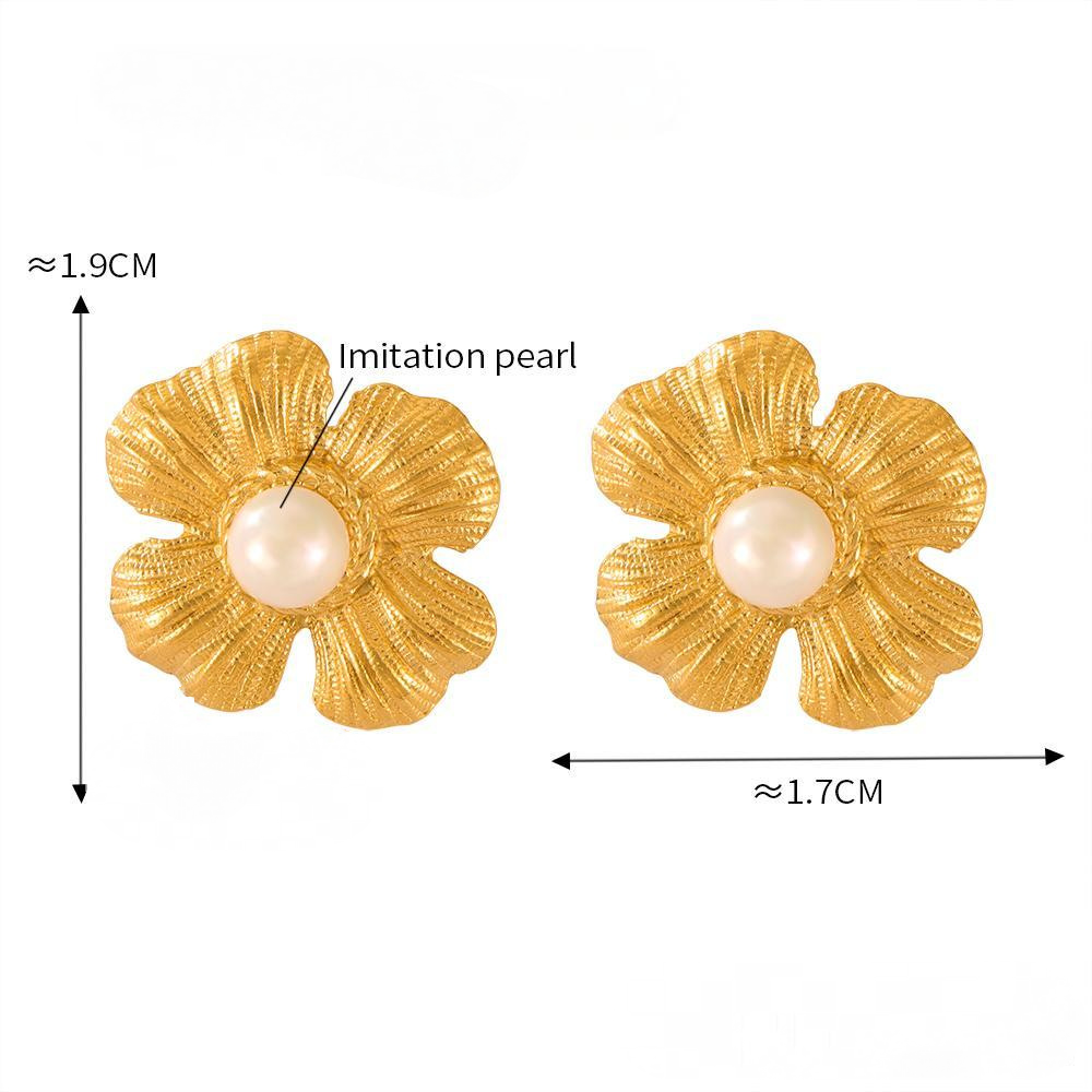 Stainless Steel Flower & Round Shape Inlay Imitation Pearl Stud Earrings