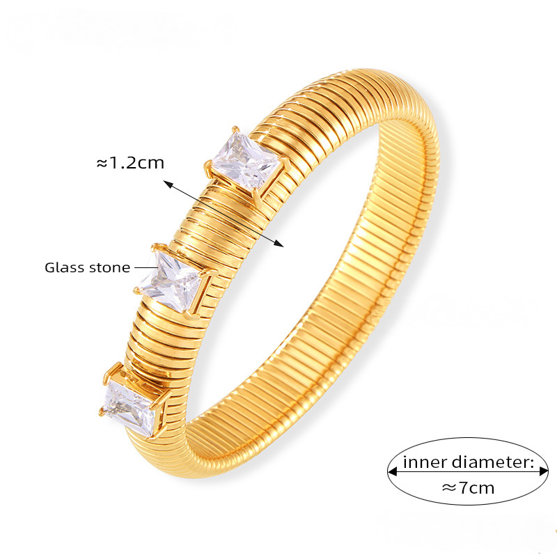 Stainless Steel Glass Stone Textured Bangle Bracelet