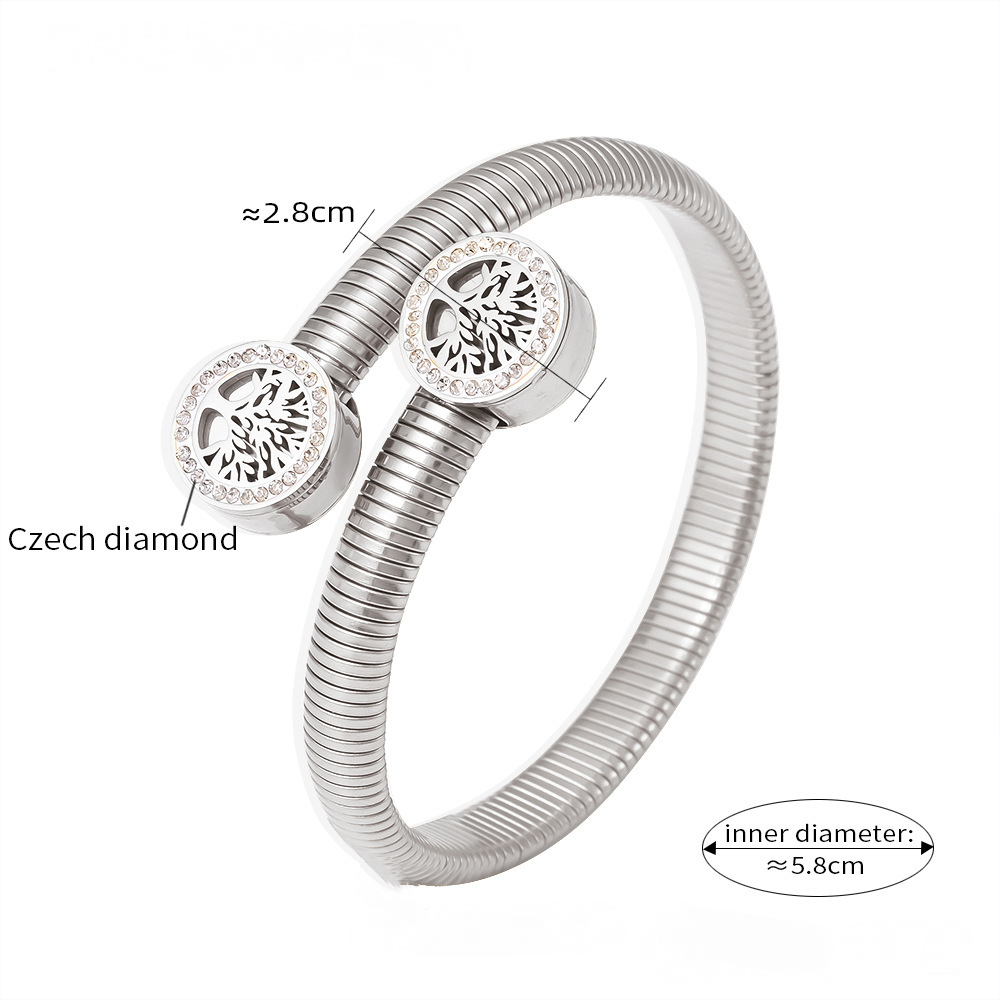 Stainless Steel Hollow Tree of Life Pattern Threaded Cuff Bracelet