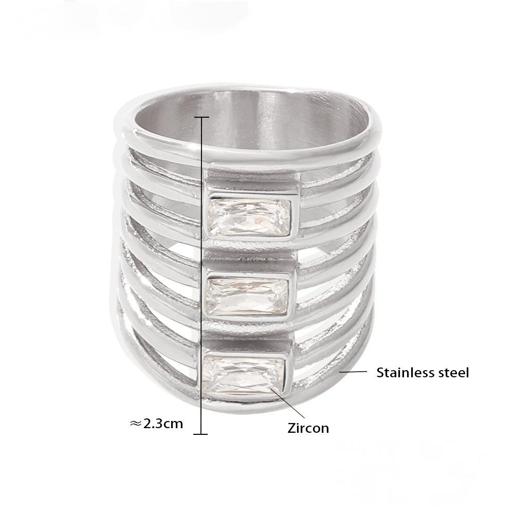 Stainless Steel Layered Square Cubic Zirconia Ring