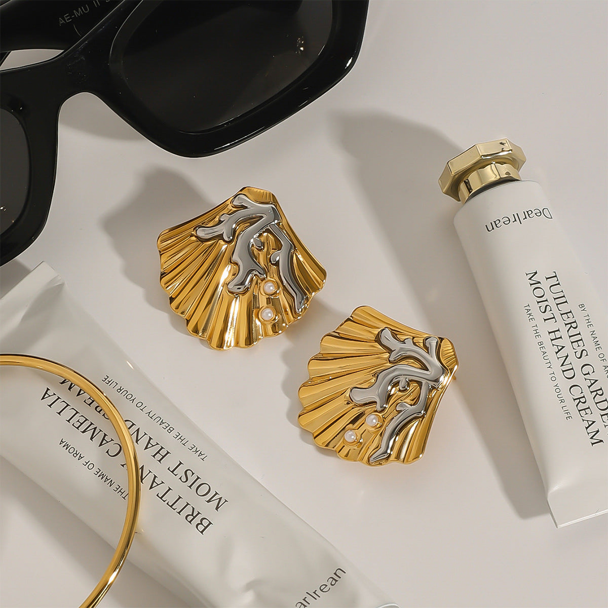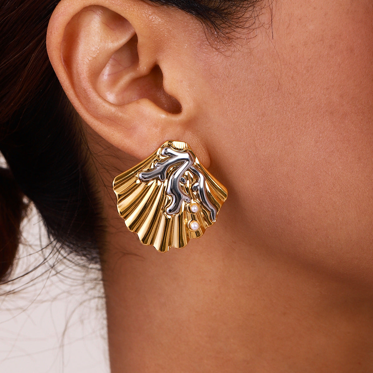 Stainless Steel Ocean Wind Fake Pearl Stud Earrings
