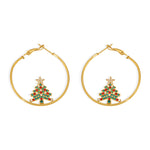 Stainless Steel Rainbow Zircon Christmas Tree Hoop Earrings