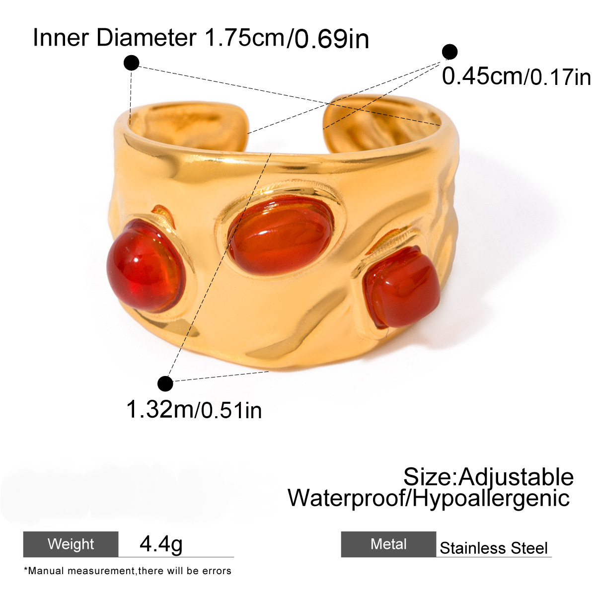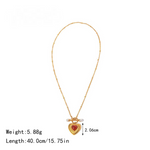 Stainless Steel Red Agate Heart Necklace Bracelet Ring Earrings Jewelry Suit