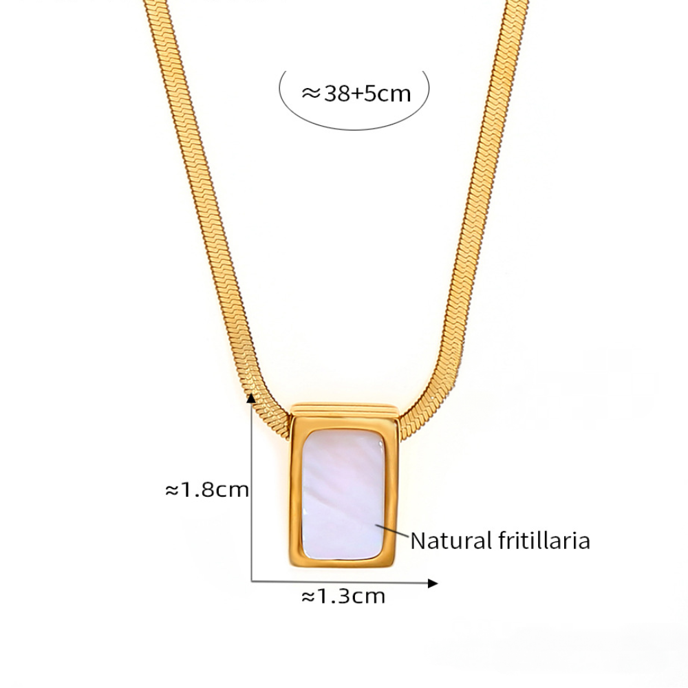 Stainless Steel Square Inlay Mother of Pearl Pendant Snake Chain Necklace