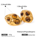 Stainless Steel Tiger's Eye Necklace Bracelet Ring Earrings Jewelry Suit