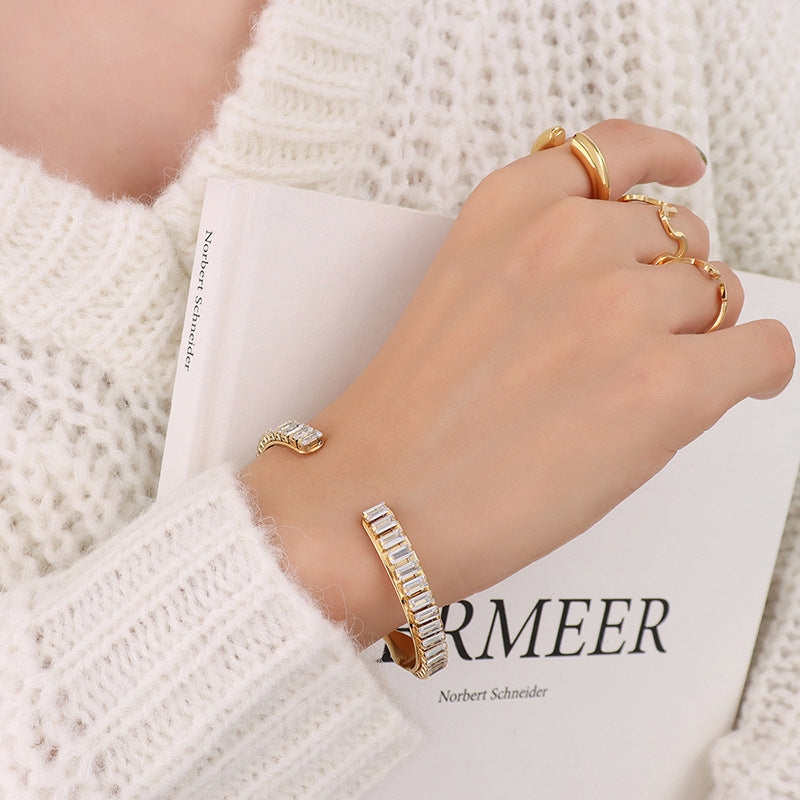 Stainless Steel Twisted Cubic Zirconia Bracelet