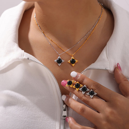 Stainless Steel Flower Charm Necklace Earrings Jewelry Suit