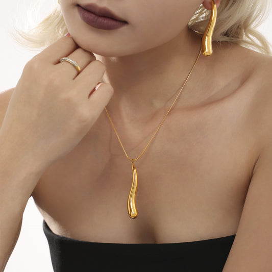 Stainless Steel Water Drop Necklace Texture Earrings Jewelry Suit