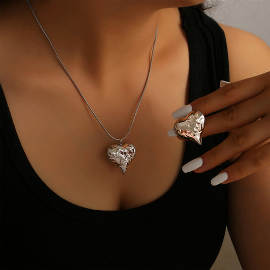 Irregular Texture Heart Necklace Earrings Jewelry Suit