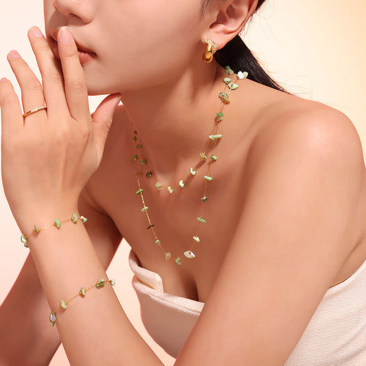 Green Natural Stone Beaded Necklace Bracelet Jewelry Suit