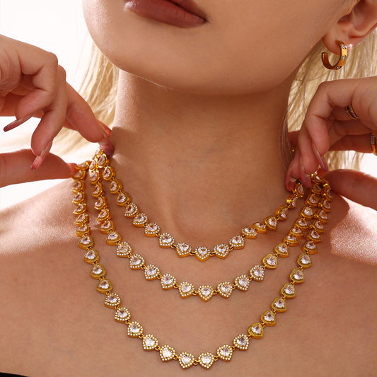 Heart Shaped Cubic Zirconia Necklace Bracelet Jewelry Suit