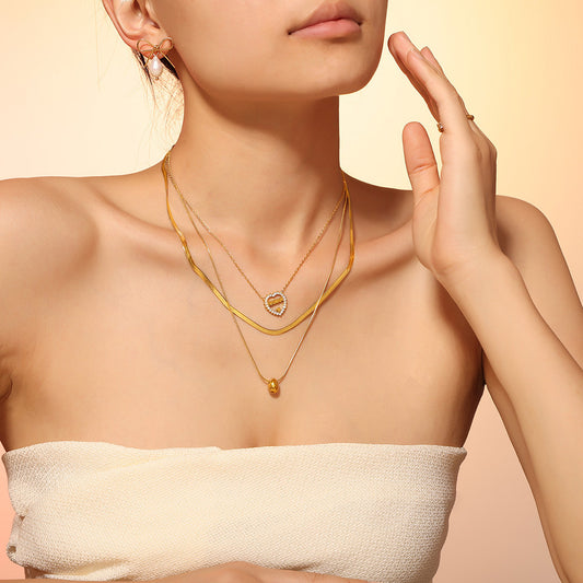 Prix habituel Du $3.00 USDPrix habituelPrix unitaire / parPrix promotionnel Du $3.00 USDHeart Cubic Zirconia Snake Chain Necklace Bracelet Jewelry Suit