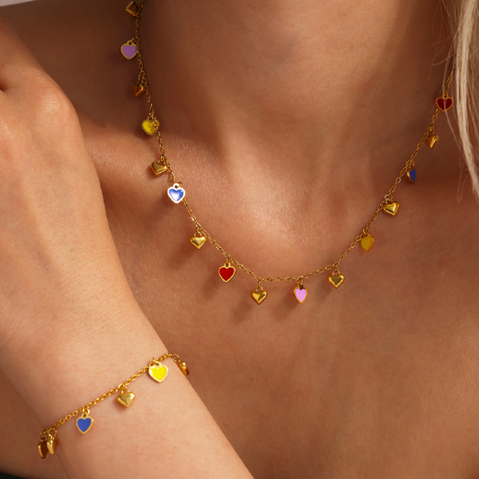 Heart Shaped Oil Drop Pendant Necklace Bracelet Jewelry Set