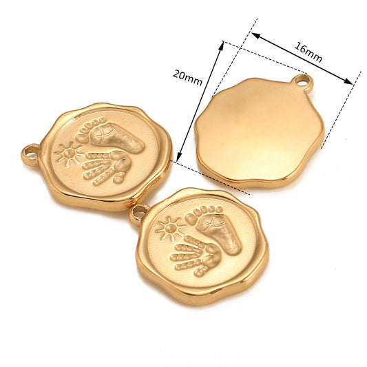 Pendentif en acier inoxydable avec empreinte de main et de pied